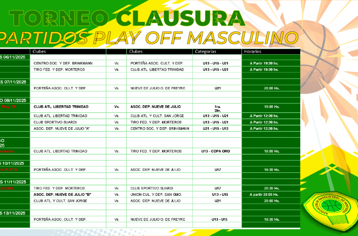 Programación Parcial Partidos Play Off Torneo Clausura Masculino