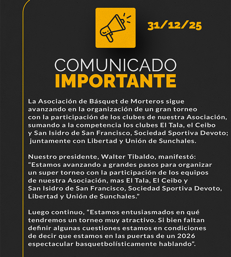 ✍Comunicado oficial de la Asociación de Básquet Morteros.