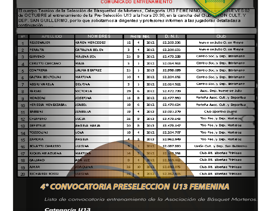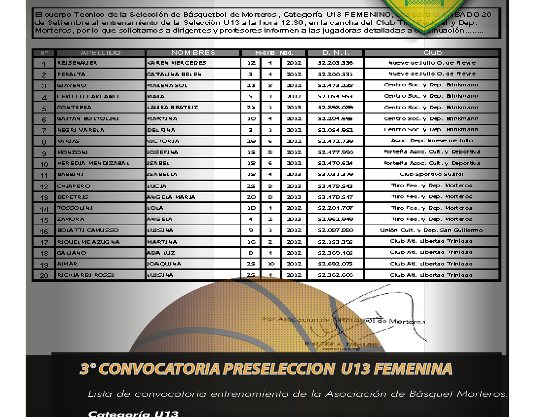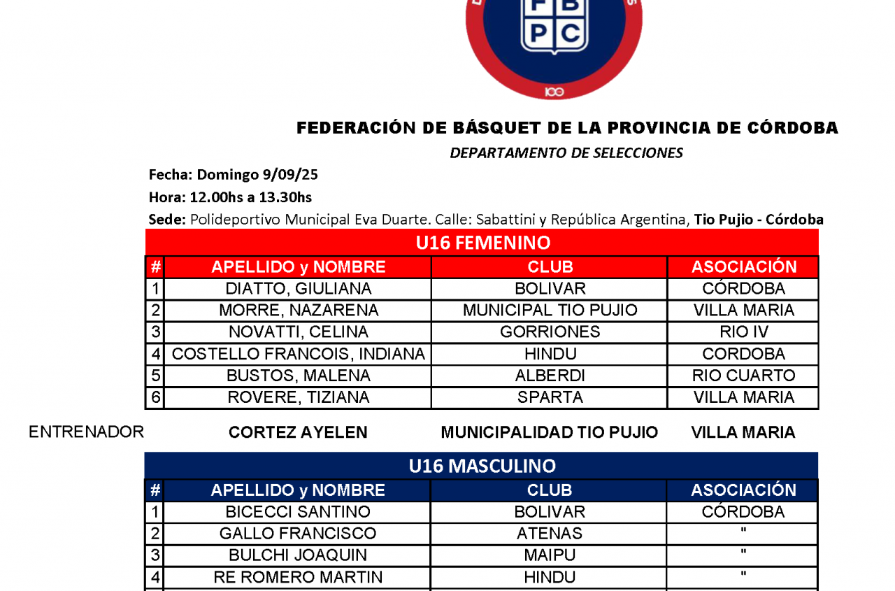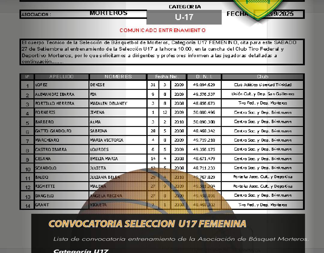 Convocatoria Entrenamiento Jugadoras Preseleccion 3×3 U16 Femenino