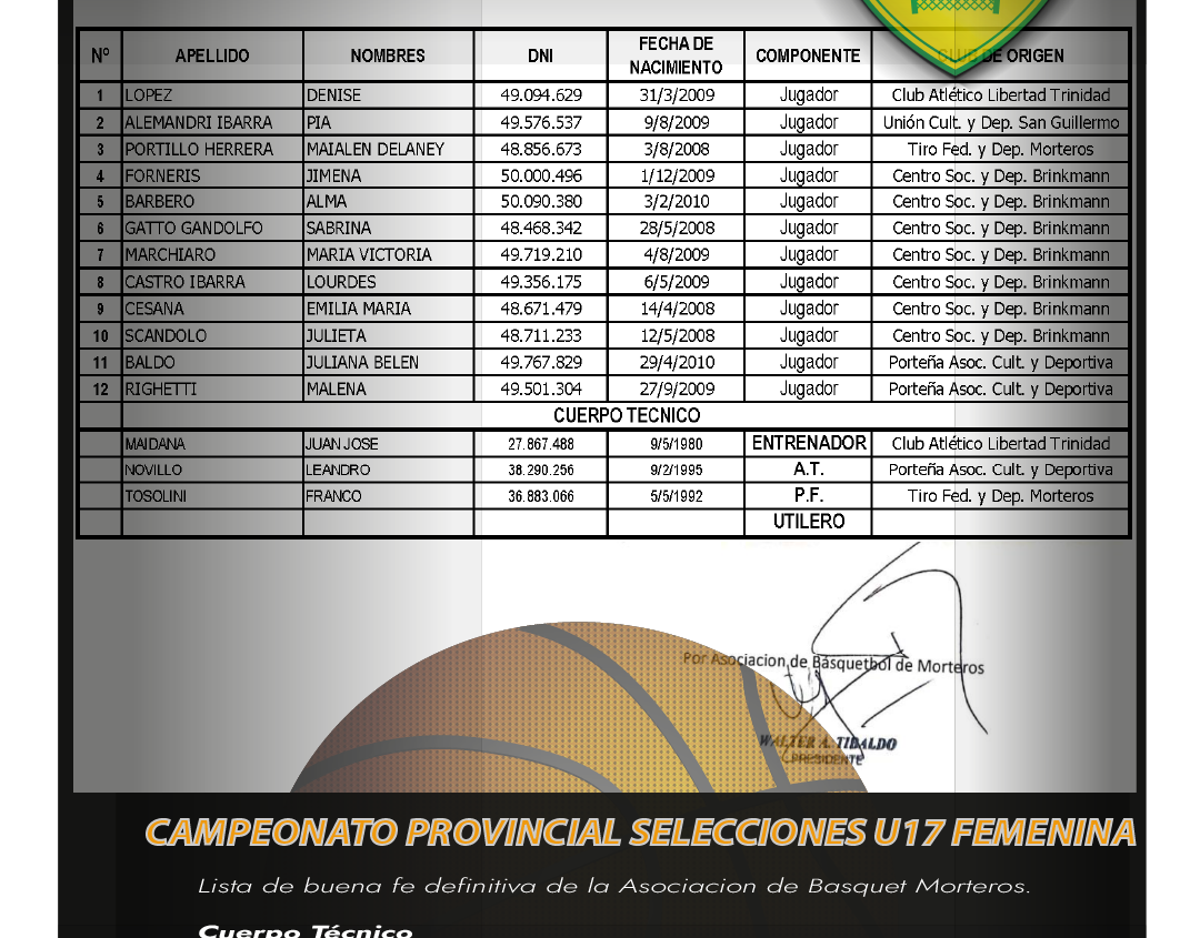 Nuestras Selecciones clasificadas para Campeonato Provincial de Selecciones Final Four U17!!!