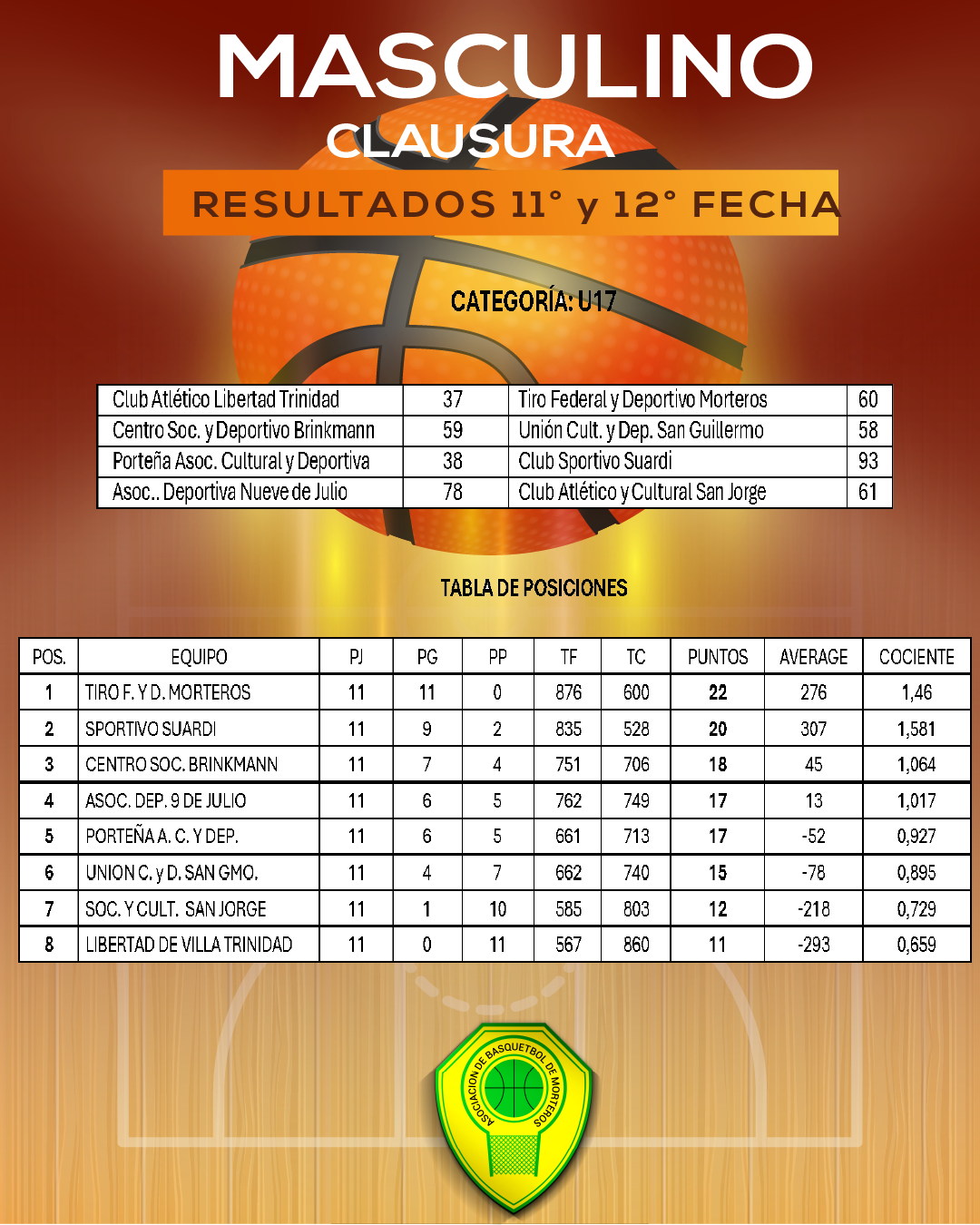 🏀Resultados y Tabla de Posiciones de la 11° y 12° Fecha del Torneo Clausura Masculino 2025 – Categoría U17