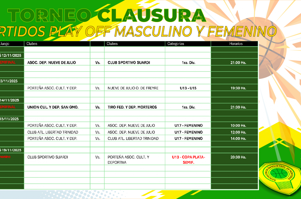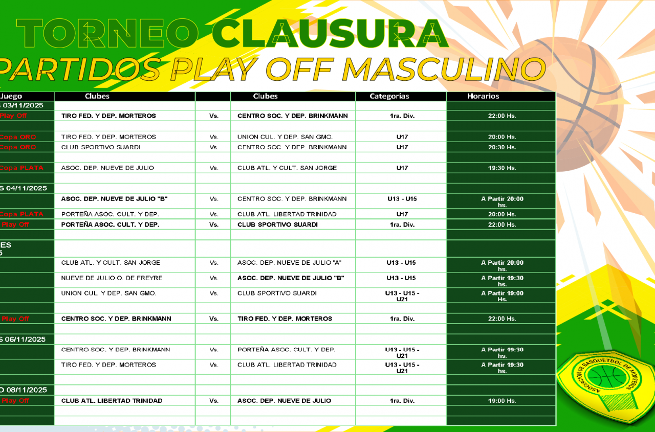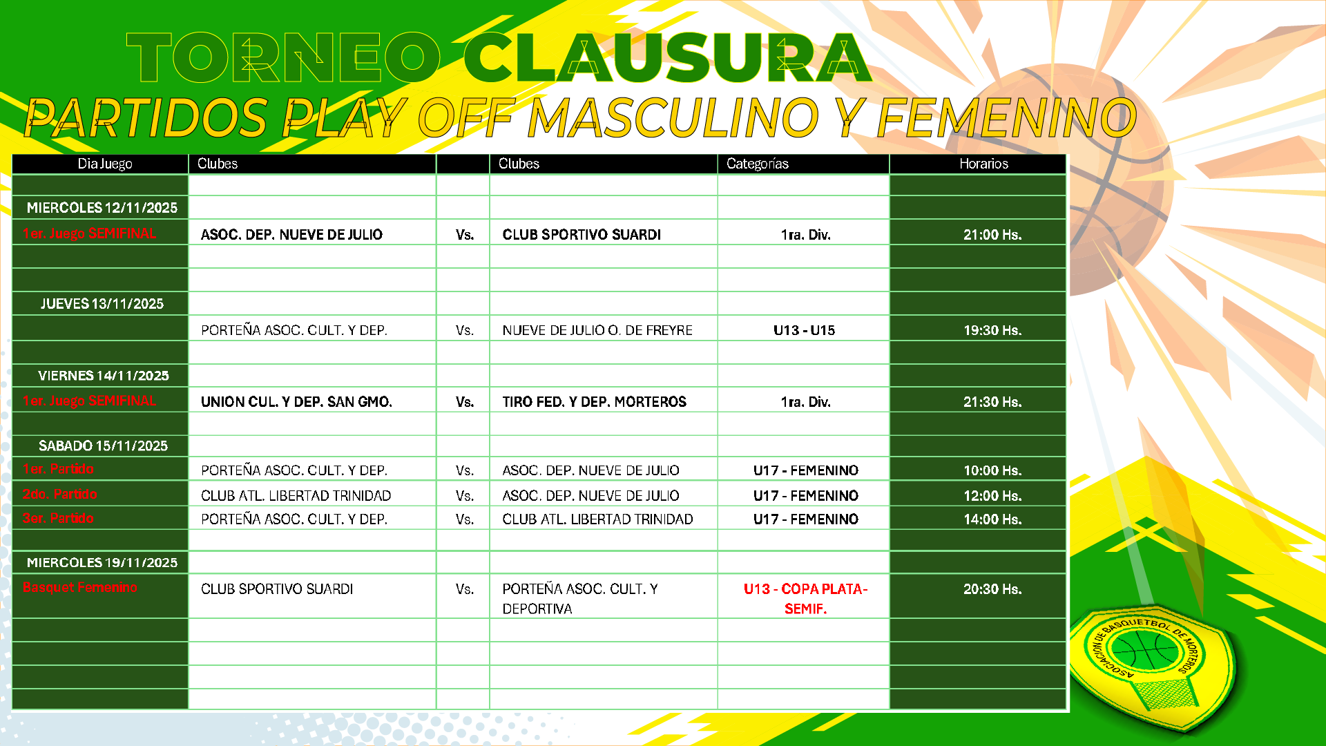 Programación Parcial Partidos Play Off Torneo Clausura Masculino y Femenino