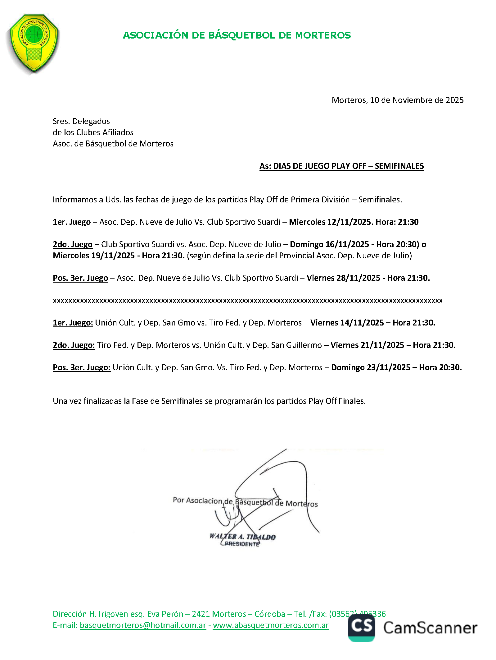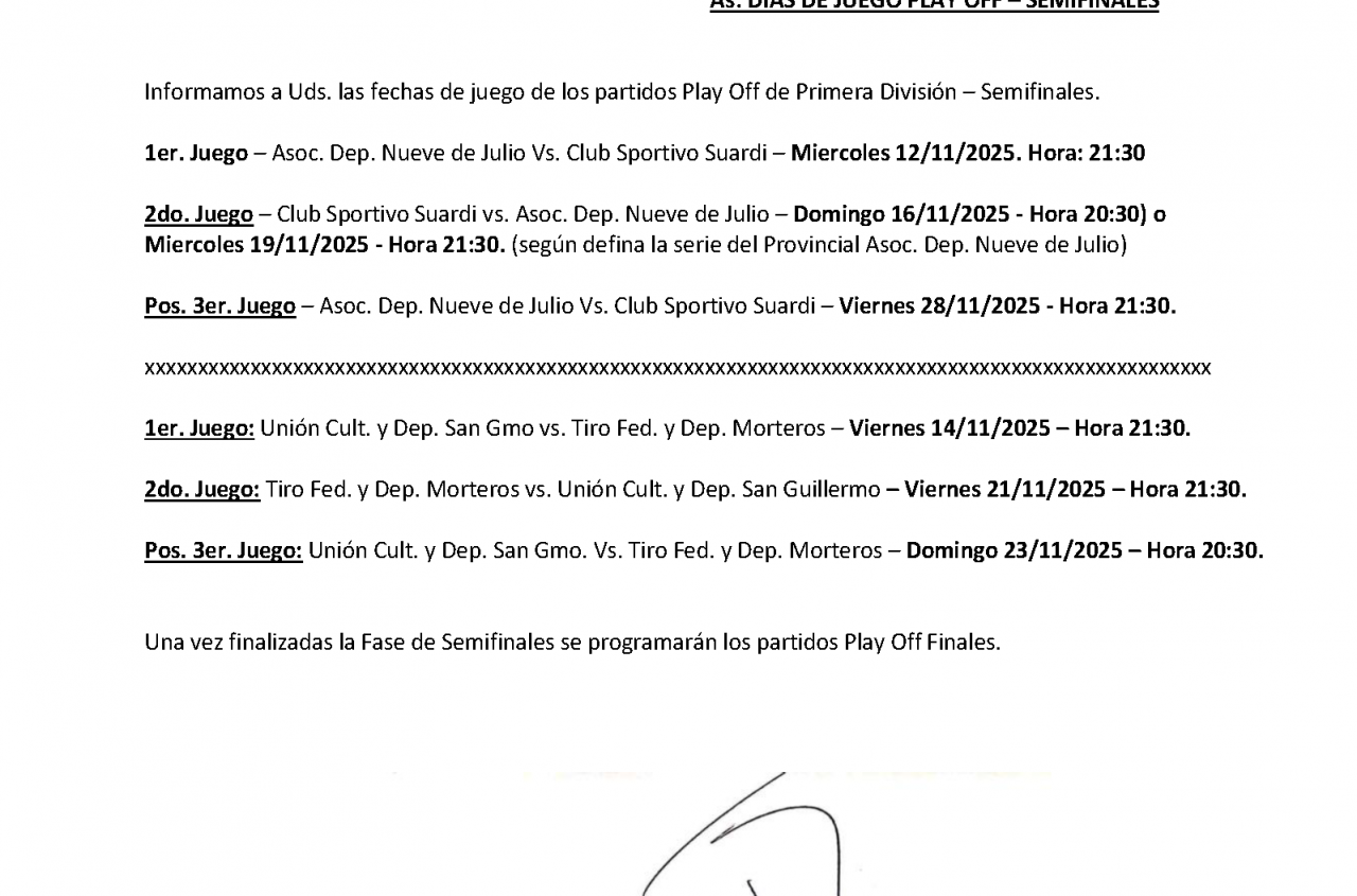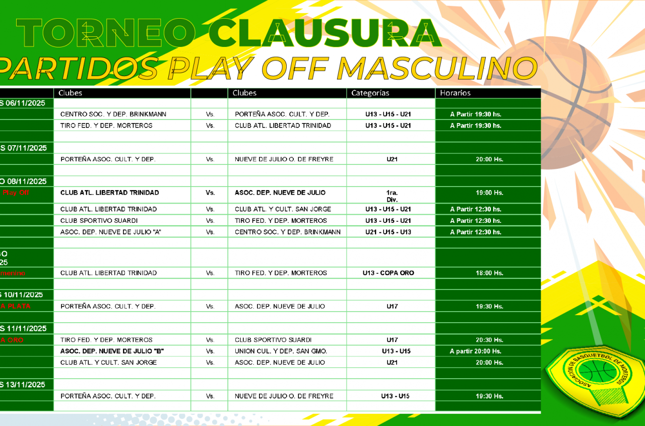 Programación Parcial Partidos Play Off Torneo Clausura Masculino y Femenino