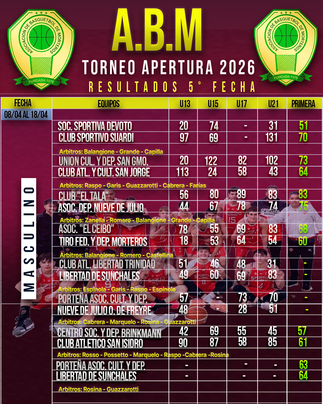 🏀🏆ACTUALIZADO❗👉 Resultados de la 5° Fecha del Torneo Apertura Asociativo Masculino.