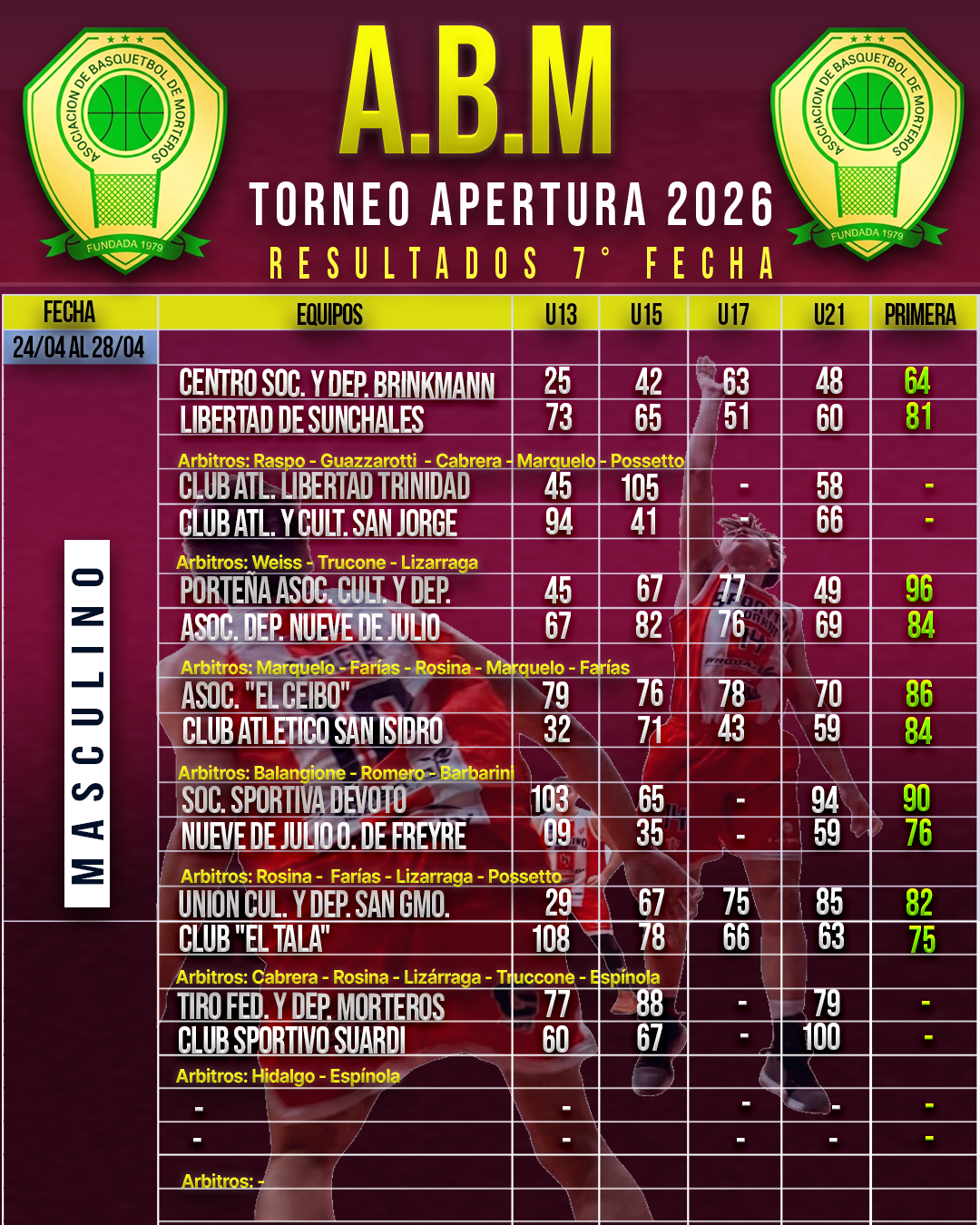🏀🏆ACTUALIZADO❗👉 Resultados Parciales de la 6° Fecha del Torneo Apertura Asociativo Masculino.