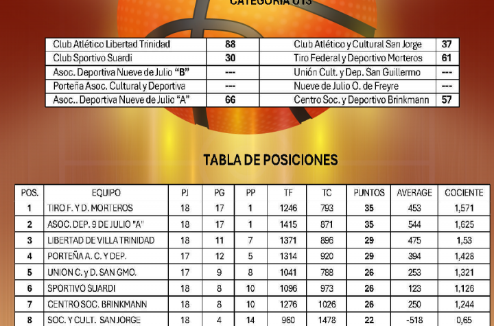 🏀Resultados y Tabla de Posiciones de la 18° Fecha del Torneo Clausura Masculino 2025 – Categoría U13