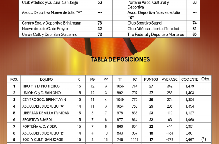 Administrador 13 septiembre, 2022 Resultados y Tablas de Posiciones de la 6° Fecha del Torneo Clausura. Post navigation Anterior Resultados y Tablas de Posiciones de la 6° Fecha del Torneo ClausuraSiguiente Resultados y Tablas de Posiciones de la 6° Fecha del Torneo Clausura Más Historias Categorías Masculino U 15 🏀Resultados y Tabla de Posiciones de la 14° y 15° Fecha del Torneo Clausura Masculino 2025 – Categoría U15 27 octubre, 2025 Administrador Categorías Masculino U 15 🏀Resultados y Tabla de Posiciones de la 12° y 13° Fecha del Torneo Clausura Masculino 2025 – Categoría U15 24 octubre, 2025 Administrador Noticias ⛹🏀Programación 14° Fecha del Torneo Clausura Masculino y 13° Fecha Femenino. 24 octubre, 2025 Administrador