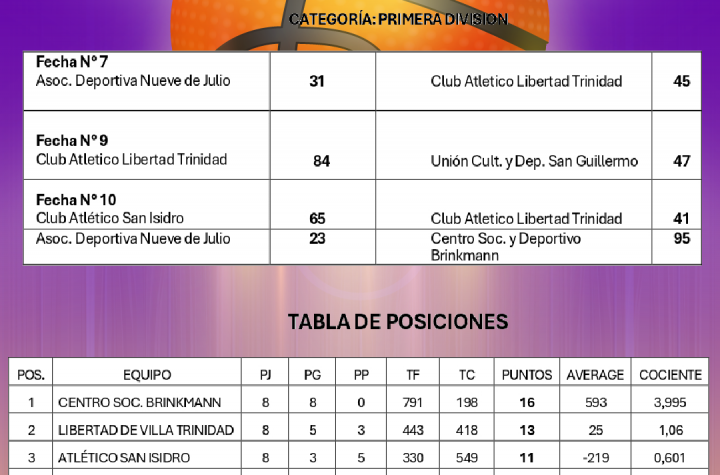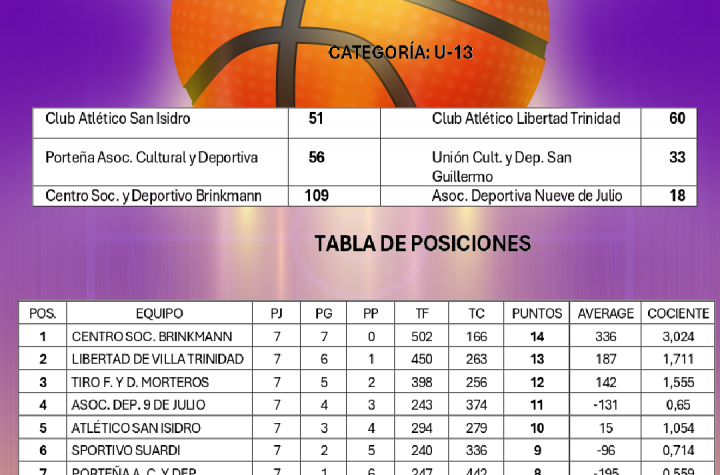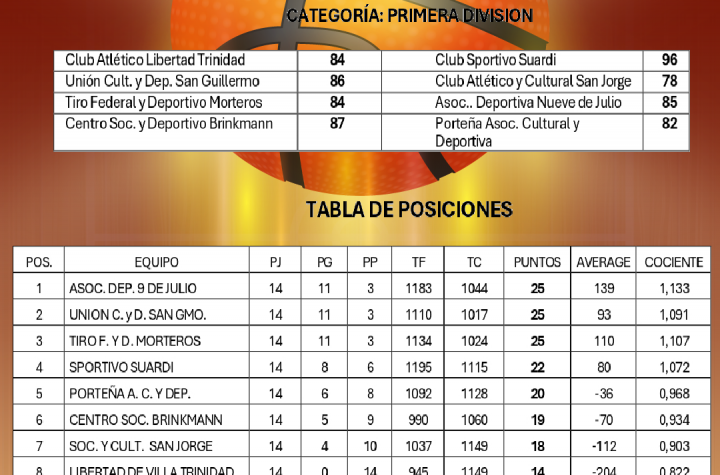 🏀Resultados y Tabla de Posiciones de la 12° y 13° Fecha del Torneo Clausura Masculino 2025 – Categoría Primera