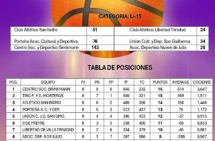 Administrador 18 octubre, 2023 Post navigation Anterior ⛹🏀Resultados de la 5° Fecha del Torneo Clausura 2023 – Categoría U 17 MasculinoSiguiente Programación de la 5° y 6° Fecha del Masculino y 6° Fecha del Femenino del Torneo Clausura 2023 Más Historias Categorías Masculino Primera 🏀Resultados y Tabla de Posiciones de la 12° y 13° Fecha del Torneo Clausura Masculino 2025 – Categoría Primera 24 octubre, 2025 Administrador Noticias ⛹🏀Programación 14° Fecha del Torneo Clausura Masculino y 13° Fecha Femenino. 24 octubre, 2025 Administrador Noticias ⛹🏀Programación 13° Fecha del Torneo Clausura Masculino y 12° Fecha Femenino. 16 octubre, 2025 Administrador