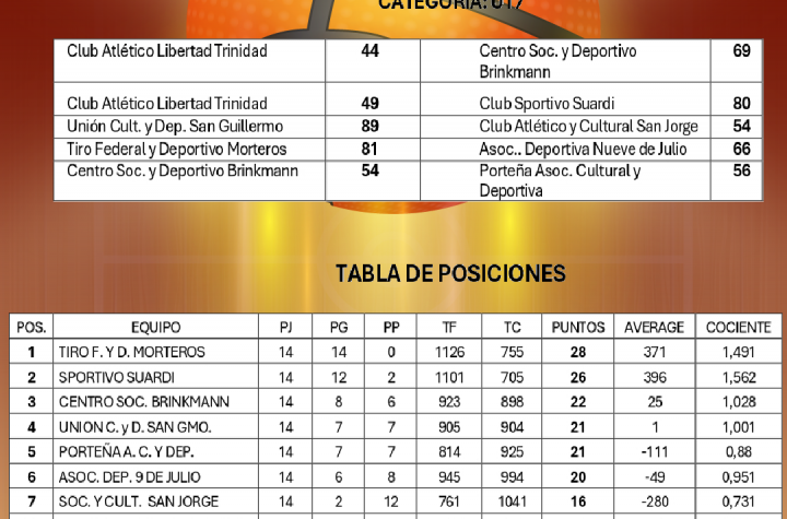 🏀Resultados y Tabla de Posiciones de la 14° y 15° Fecha del Torneo Clausura Masculino 2025 – CategorĂa U17