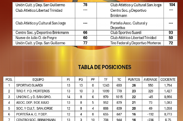 🏀Resultados y Tabla de Posiciones de la 14° y 15° Fecha del Torneo Clausura Masculino 2025 – CategorĂa Primera