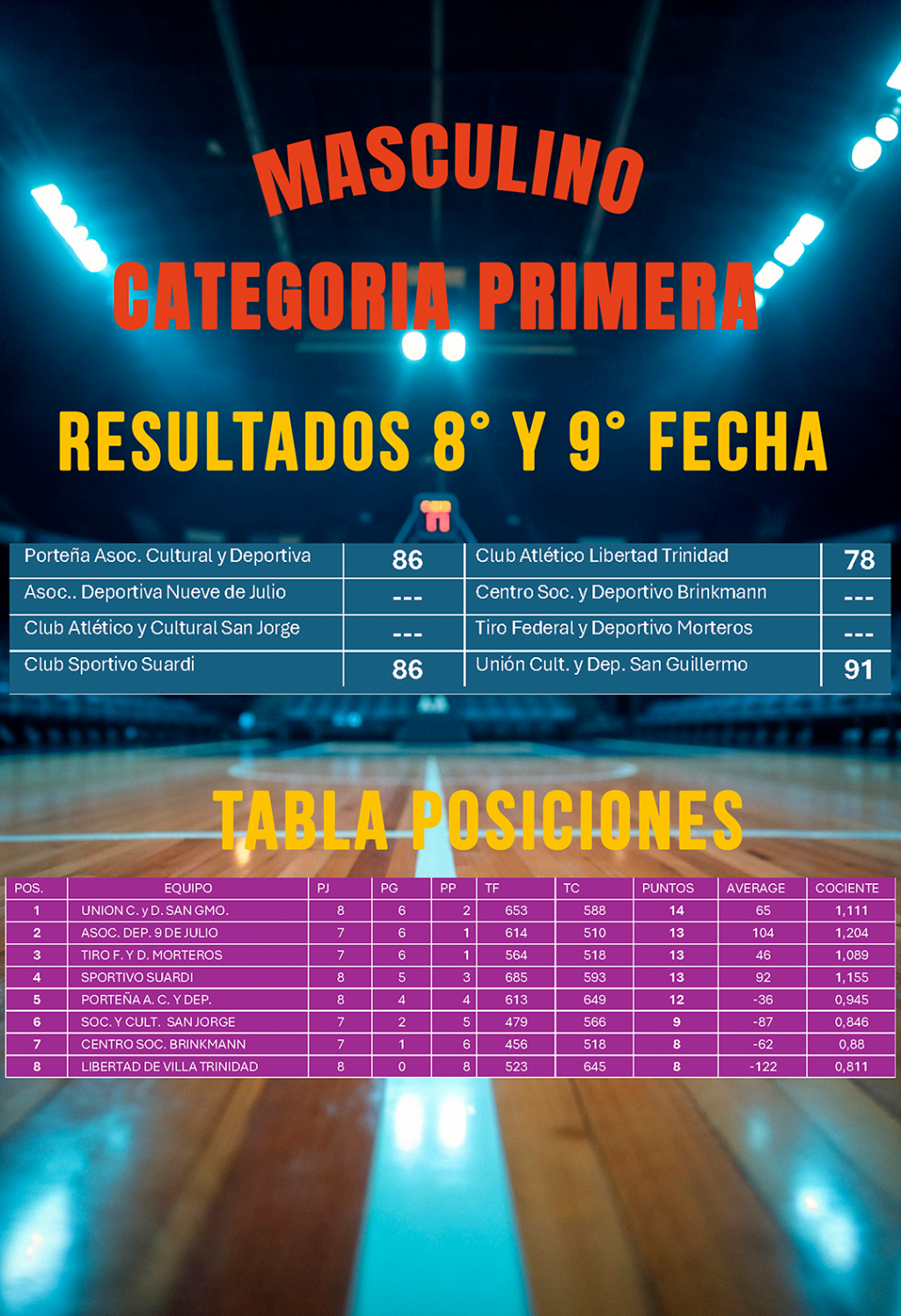 🏀Resultados y Tabla de Posiciones de la 14° y 15° Fecha del Torneo Clausura Masculino 2025 – Categoría Primera