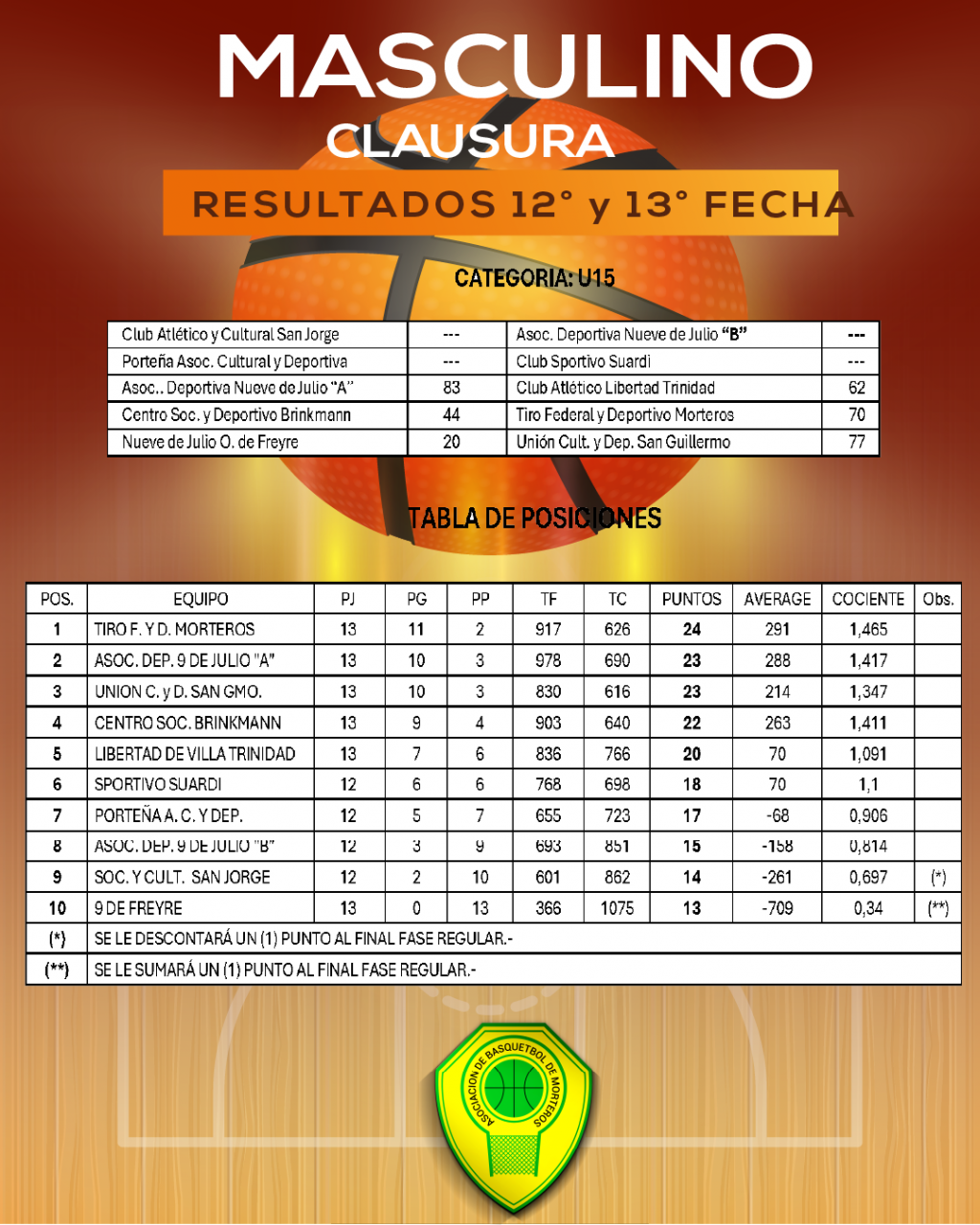 🏀Resultados y Tabla de Posiciones de la 12° y 13° Fecha del Torneo Clausura Masculino 2025 – CategorĂa U17