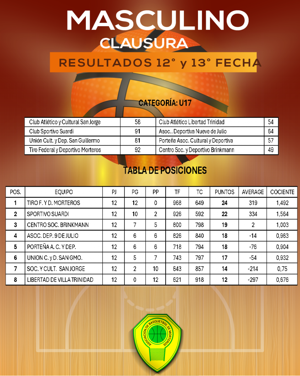 🏀Resultados y Tabla de Posiciones de la 12° y 13° Fecha del Torneo Clausura Masculino 2025 – CategorĂa U15