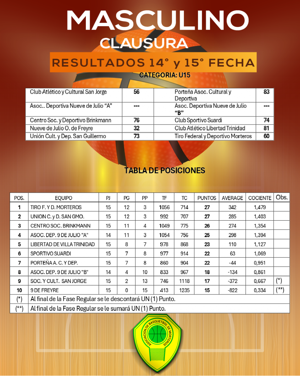 🏀Resultados y Tabla de Posiciones de la 14° y 15° Fecha del Torneo Clausura Masculino 2025 – Categoría U15