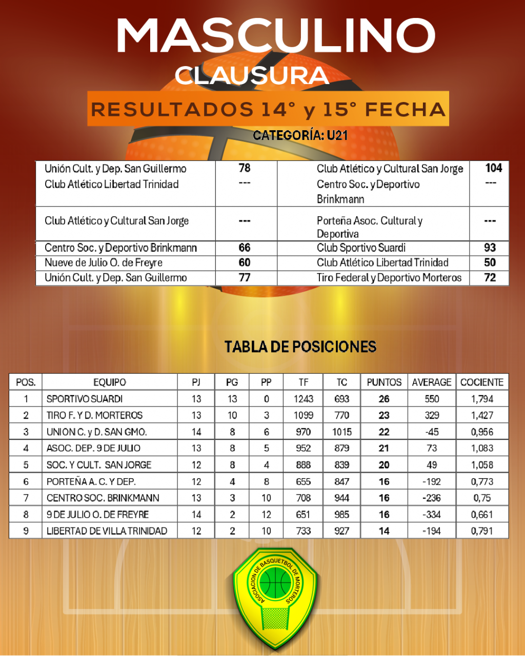 🏀Resultados y Tabla de Posiciones de la 14° y 15° Fecha del Torneo Clausura Masculino 2025 – CategorĂa U15