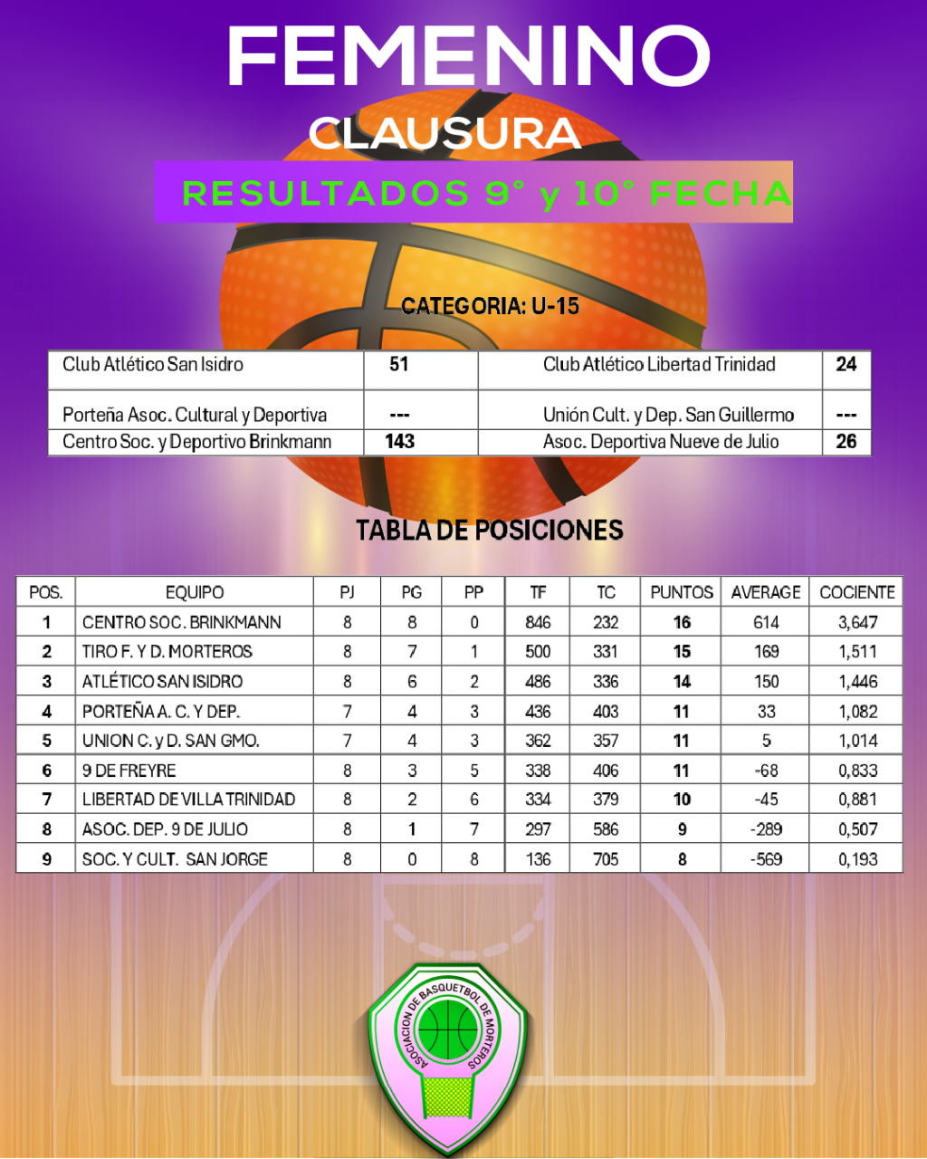 🏀Resultados y Tabla de Posiciones de la Ultima Fecha del Torneo Clausura Femenino 2025 – CategorĂa U15