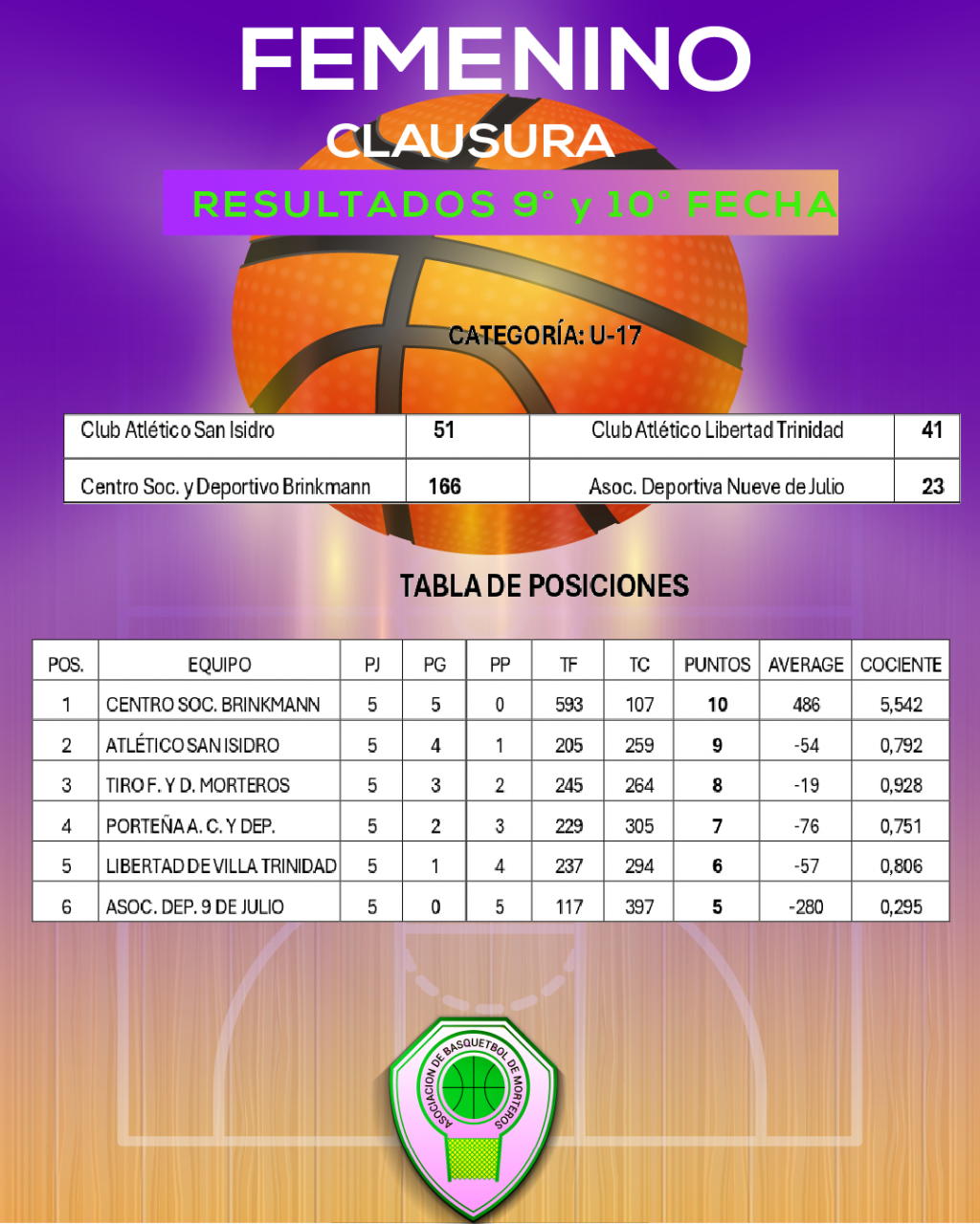 🏀Resultados y Tabla de Posiciones de la 9° y 10° Fecha del Torneo Clausura Femenino 2025 – Categoría U17