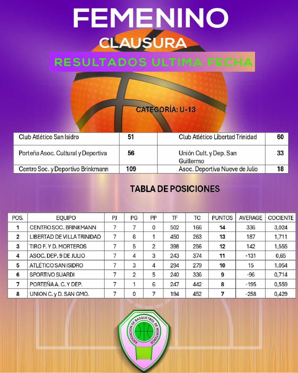 🏀Resultados y Tabla de Posiciones de la Ultima Fecha del Torneo Clausura Femenino 2025 – CategorĂa U15
