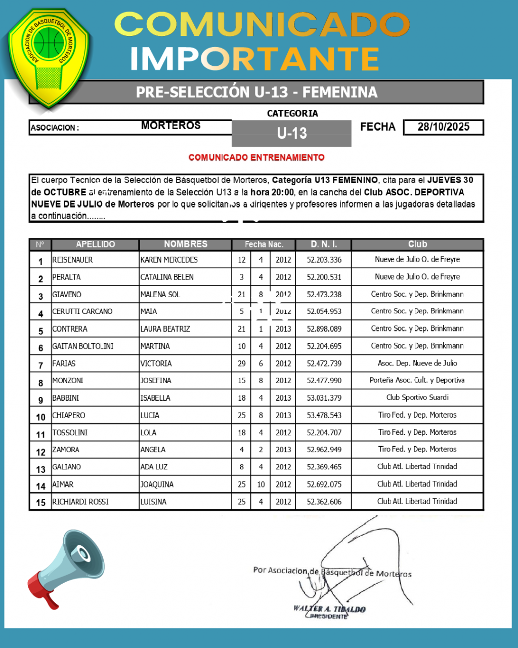 ⛹️♀️Lista de Buena Fe definitiva Seleccionado U15 Femenina.