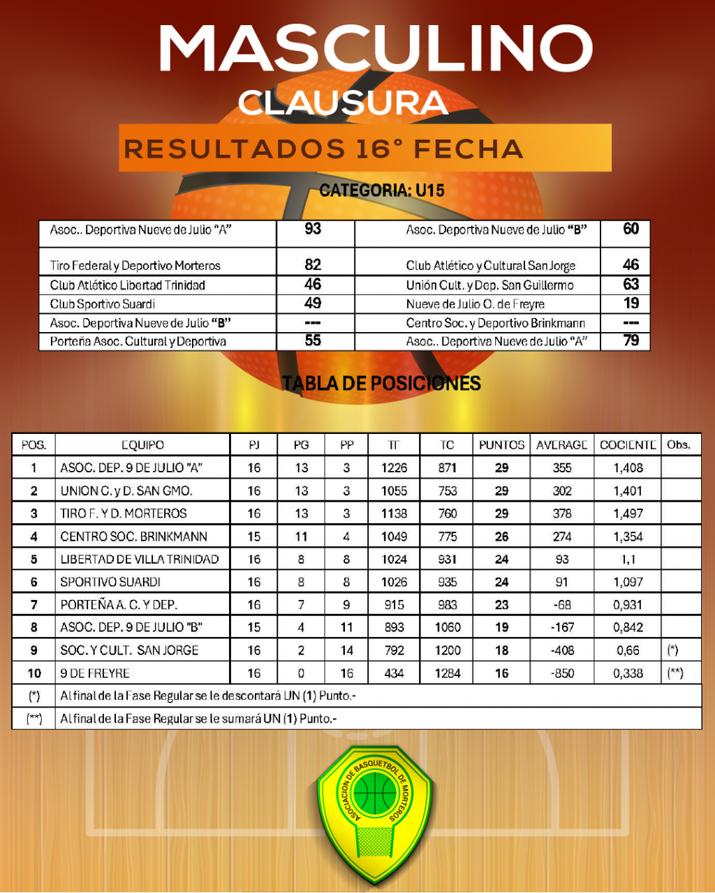 🏀Resultados y Tabla de Posiciones de la 16° Fecha del Torneo Clausura Masculino 2025 – CategorĂa U13