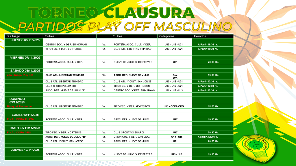 Programación Partidos Pendientes y Play Off Torneo Clausura