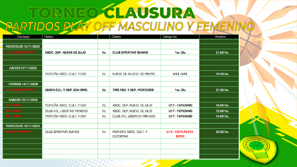 Programación Parcial Partidos Play Off Torneo Clausura Masculino