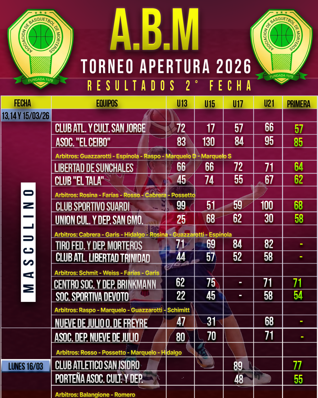 🏀🏆Resultados de la 1° Fecha del Torneo Apertura Asociativo Masculino.