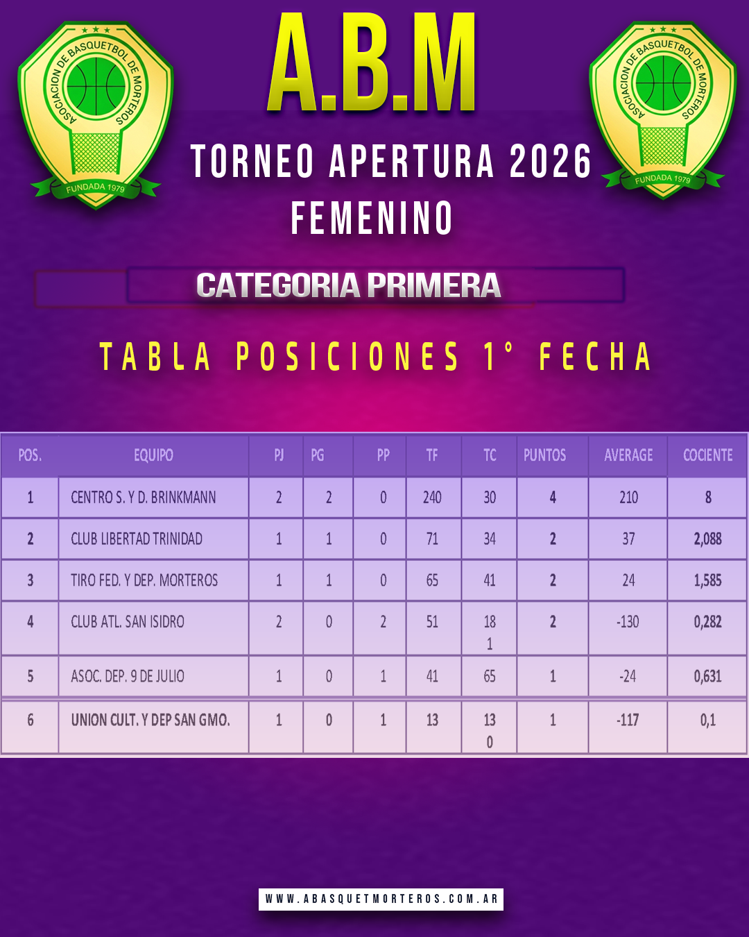 🏀🏆Resultados de la 1° Fecha del Torneo Apertura Asociativo Femenino.