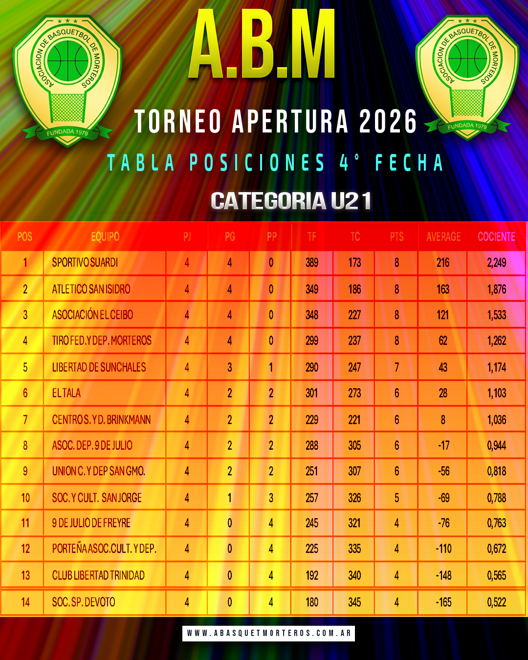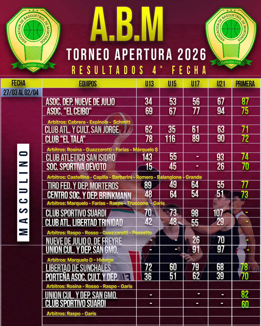 🏀🏆ACTUALIZADO❗👉 Resultados Parciales de la 4° Fecha del Torneo Apertura Asociativo Masculino.