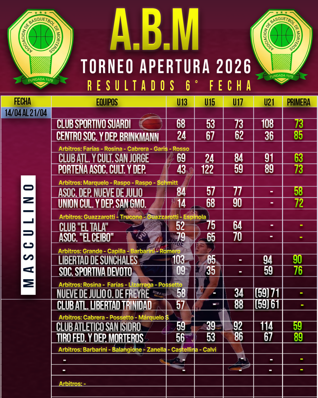 🏀🏆ACTUALIZADO❗👉 Resultados de la 5° Fecha del Torneo Apertura Asociativo Masculino.
