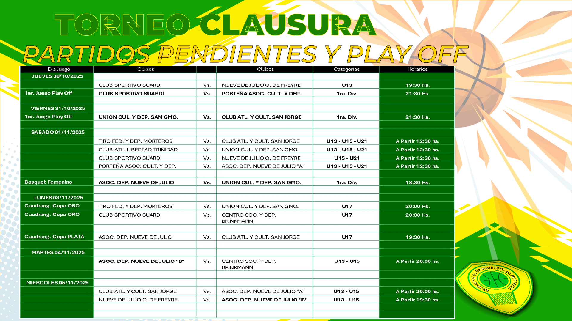 Programación Partidos Pendientes y Play Off Torneo Clausura